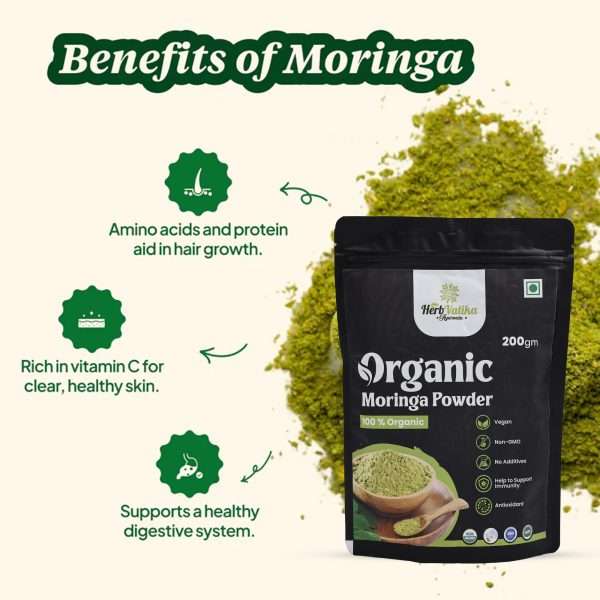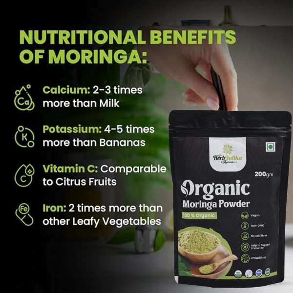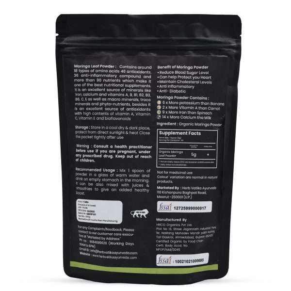 Contains around 18 types of amino acids, 46 antioxidants, 36 anti-inflammatory compounds, and more than 90 nutrients, which make it one of the best organic nutritional supplements. It is an excellent source of minerals like iron and calcium and vitamins A, B, B1, B2, B3, B6, C, and E, as well as macrominerals, trace minerals, and phytonutrients. It is an excellent source of antioxidants with high contents of vitamin A, vitamin E, and bioflavonoids, which support digestion, skin health, weight loss, and overall nutrition. You can easily buy moringa leaf powder online in India at an affordable price and explore its multiple uses for better health.