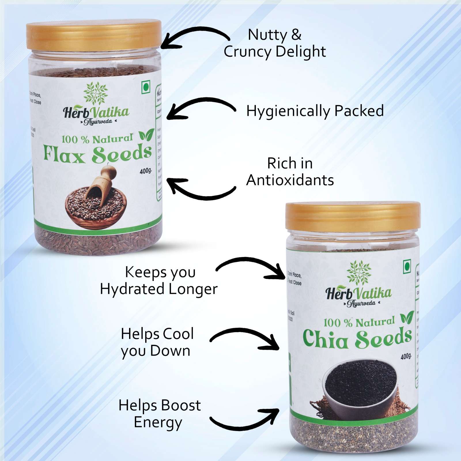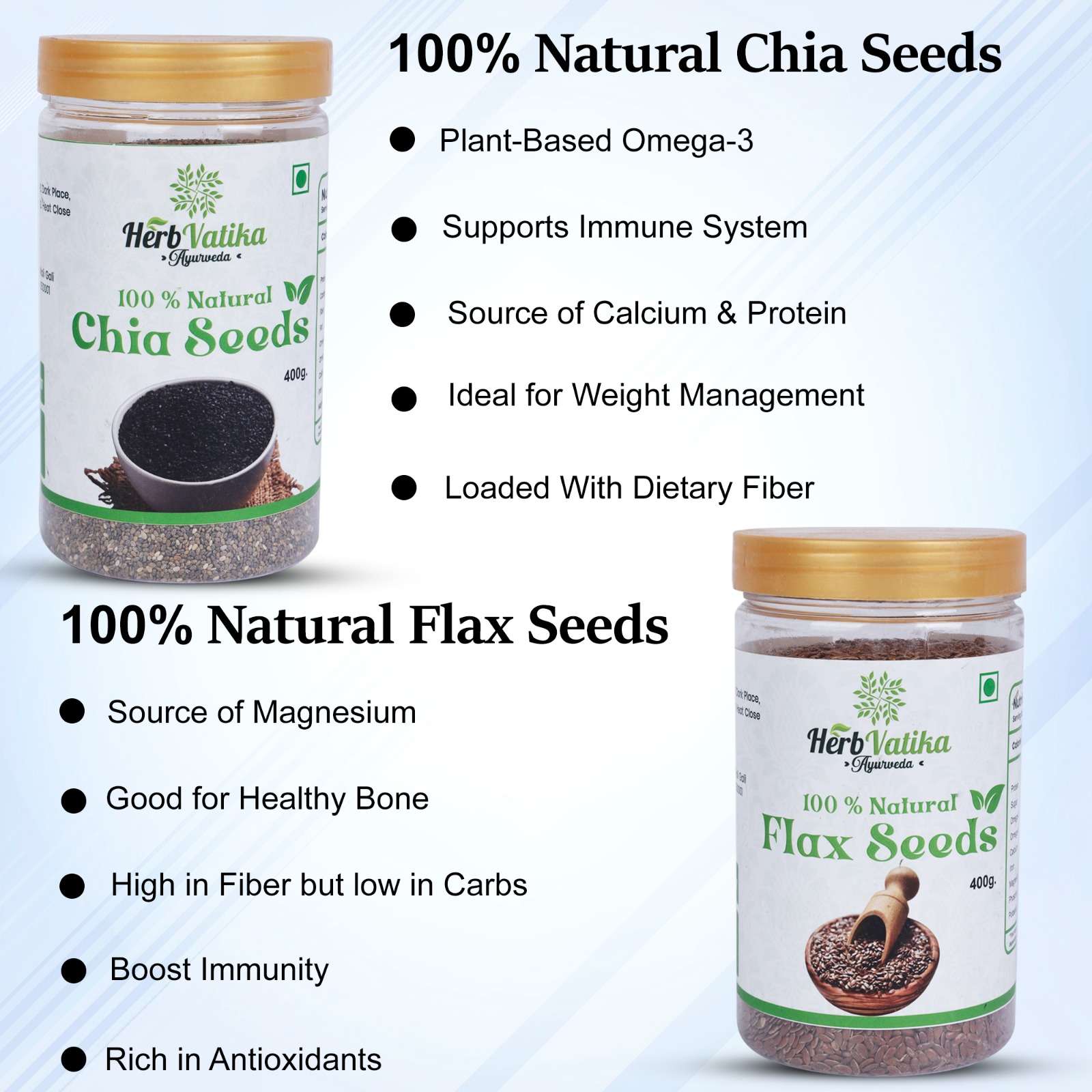 I recently bought the Chia Seed and Flax Seed combo from Herb Vatika Ayurveda, and I’m really impressed with the quality. The chia seeds are fresh and perfect for making a daily chia seed drink. I soak the chia seed in water overnight and have it first thing in the morning – super hydrating and filling.