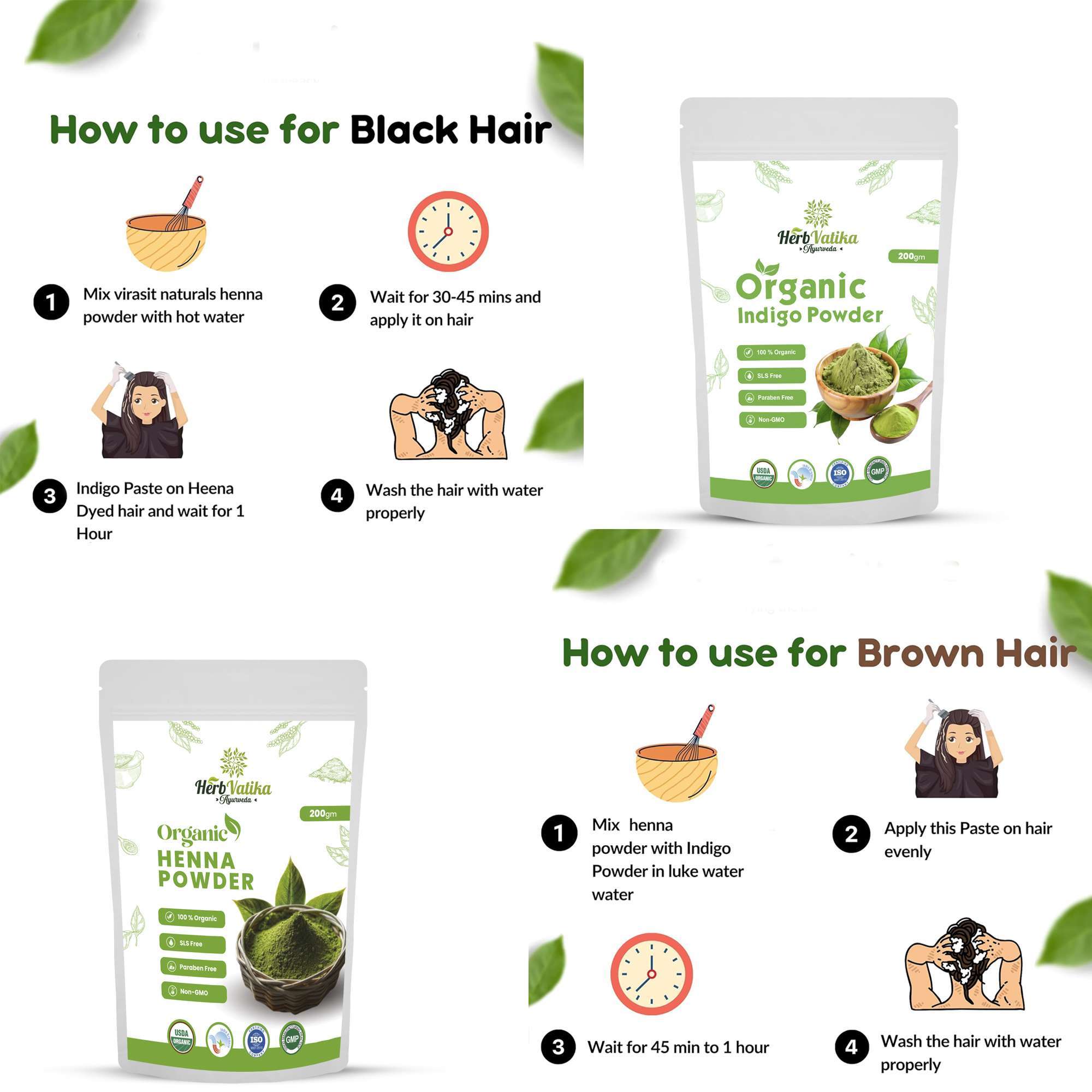 • It is an excellent alternative to chemical dyes, offering a rich black or dark brown color when mixed with henna.