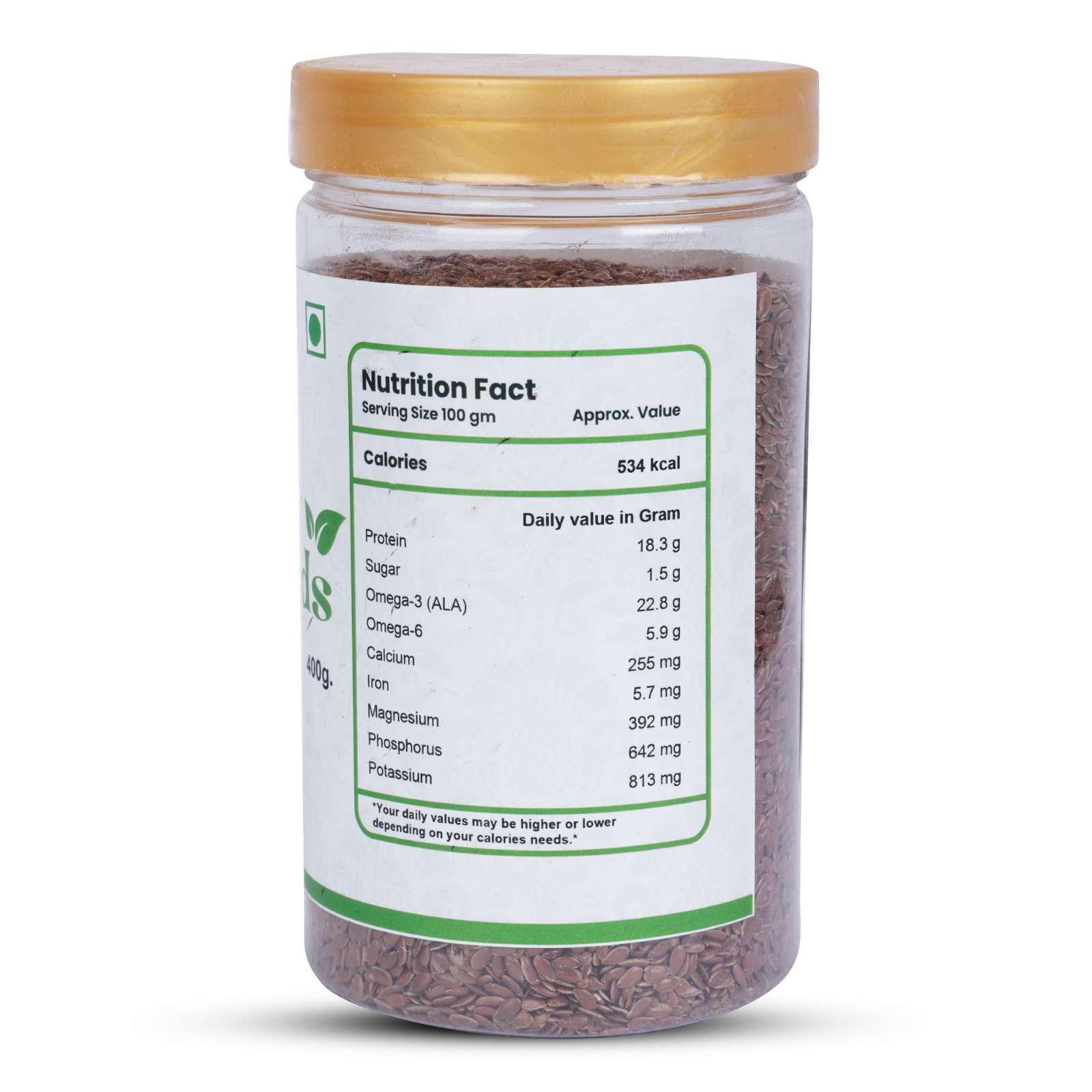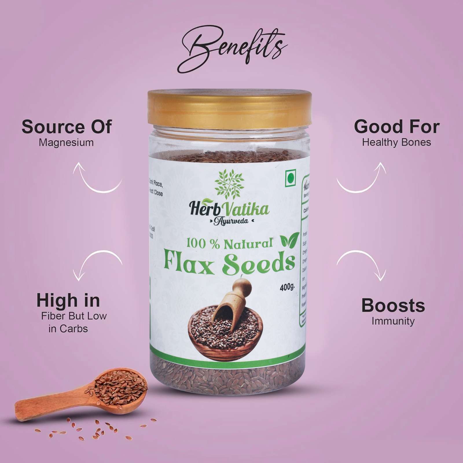 • Natural flax seeds for daily wellness.